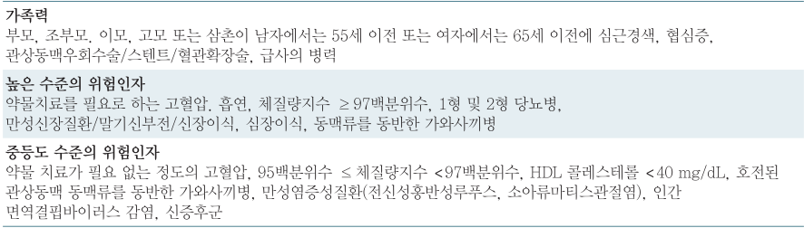 - 조기 심혈관질환의 가족력 또는