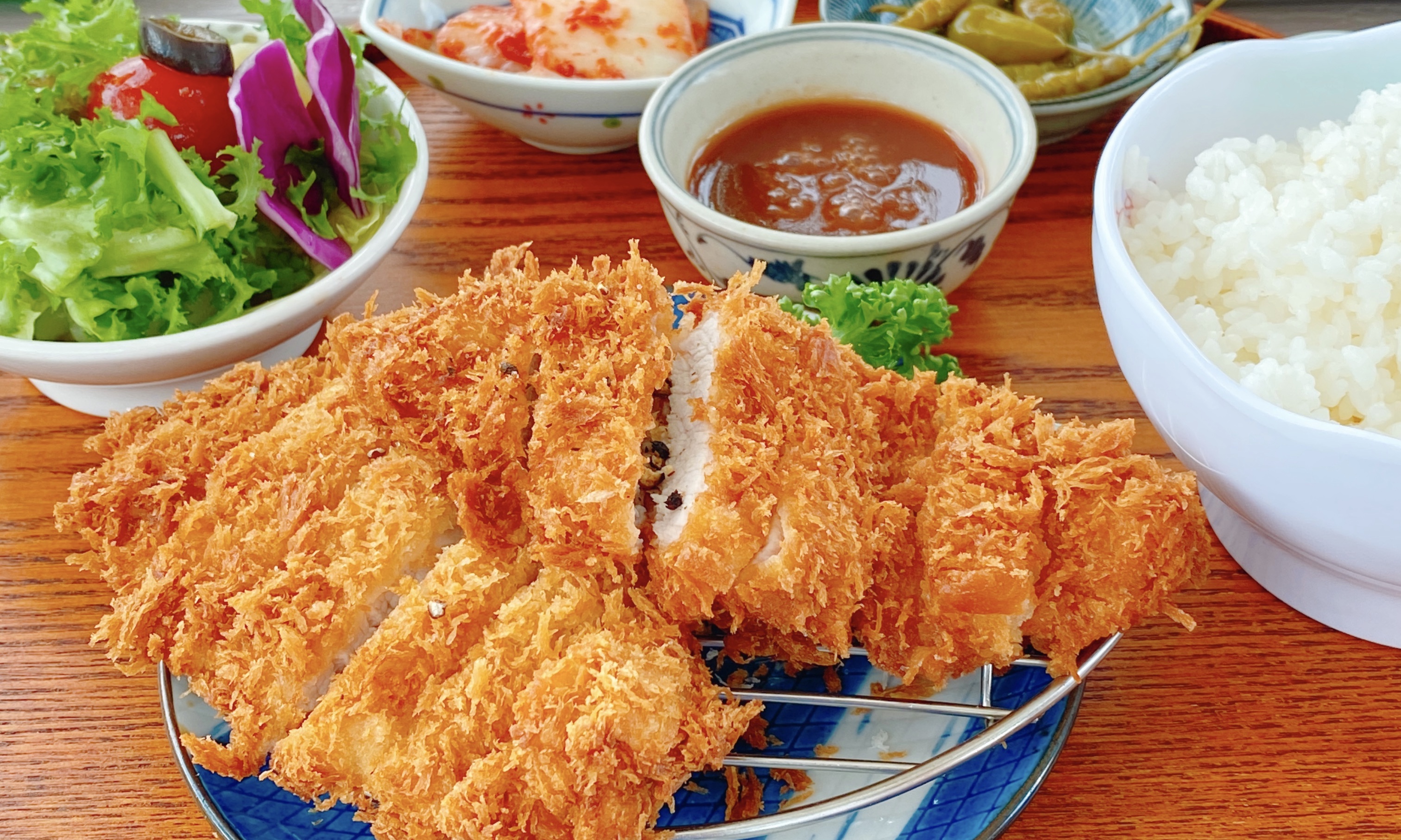 돈까스는 눈으로 보기에도 꽤 먹음직스러웠고 실제로 맛도 괜찮았다. 야외 테이블에 앉아서 자연 속에서 먹는 맛이라서 더 만족. 검게 탄 빵가루 조각이 붙어 있지만 않았으면 더 좋았을 텐데 하나 아쉬운 부분이다.