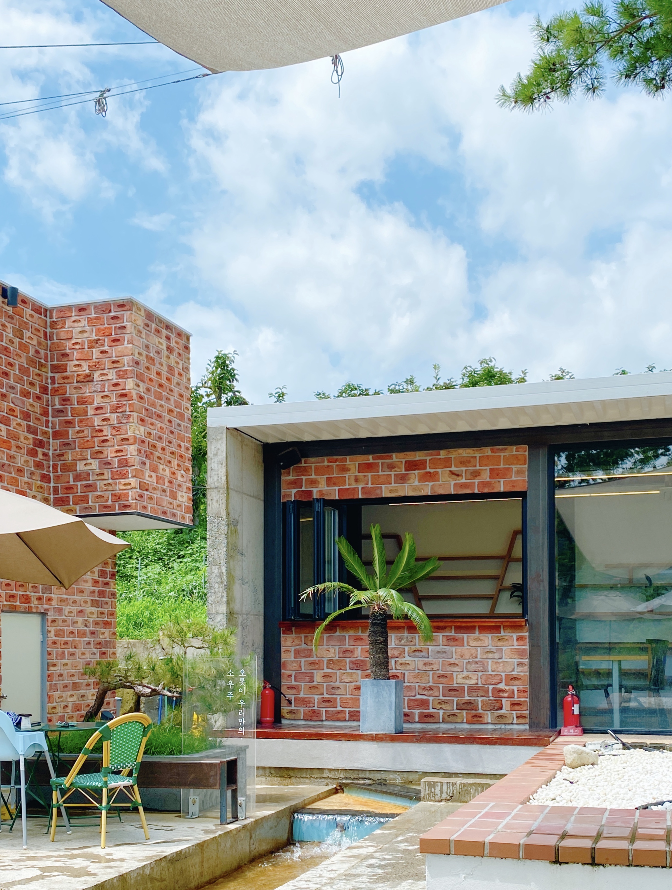 물이 흐르는 카페라는 설명은 소우주 보다는 '로카 커피'에 더 잘 어울릴 것 같기는 하다. 로카에는 비록 인공이지만 개울 형태로 꾸며져 있고 뒤편 산에는 작은 폭포도 있다. 소우주에는 카페 건물 둘레로 물길을 만들어 발을 담그고 쉴 수 있게 해두었는데... 실상은 꼬마아이들의 물놀이터.