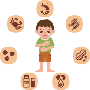 아나필락시(anaphylaxis), 즉 과민반응은 주로 항원에 대하여 전신적이며 신체의 여러 계통이 반응을 나타내는 것을 포함한 알러지 반응입니다. 기도와 심혈관계는 종종 생명을 위협하는 반응의 주요 부위이지요. 벌, 말벌이나 불개미와 같은 곤충 또는 땅콩, 라텍스, 약물 등에서 야기됩니다. 어린이들은 저관류로 아나필락시스에 의한 쇼크가 발생할 수 있으며 호흡 활동의 증가와 함께 그렁거림이나 쌕쌕거림의 증상이 더해집니다. 또한 흥분하거나 격앙되거나 절박한 두려움을 나타내기도 합니다. 대표적인 증상으로는 심한 가려움을 동반되고 피부 발적이 있는 두드러기와 피부가 붉게 되고 발적이 있는 혈관부종이 있습니다. 어떤 환자는 구토, 설사, 두드러기가 나타나기도 하고 다른 사람은 혈관부종 및 그렁거림과 쌕쌕거림이 나타나기도 합니다.